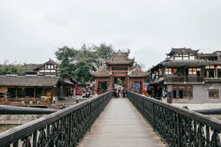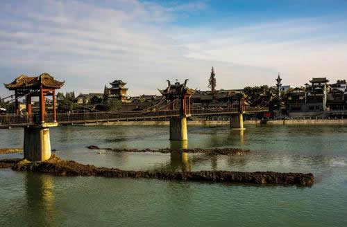元通古鎮(zhèn)三面環(huán)水,一面環(huán)山。千百年來(lái),滾滾江水滋潤(rùn)著這方神圣的土地。江岸之外良田萬(wàn)頃,古鎮(zhèn)街頭院落森森。大小不一的街巷保存完好,木板房、青瓦房相連成片,遺存至今的古老民居,泱泱然散發(fā)著濃濃的古韻,挪動(dòng)著每一寸腳步,推開每一扇窗欞,似乎都闖開了歷史的大門自己也便,情不自禁、身不由己地也便走進(jìn)了過(guò)去,走進(jìn)了歷史。走進(jìn)元通深處,一幢幢民房,一條條街巷,摸著這歷史的邊邊角角,終于找到了心靈的歸宿。元通古鎮(zhèn)依山傍水一路修來(lái),鎮(zhèn)上的主要建筑都沿文井江拔地而起,上千戶人家臨河而居,水是他們的寄托,水是他們的立命之本,水與這里的人結(jié)下了不解之緣。所以,生活在這里的居民,家家的后院里都有石階可以下到河邊。古時(shí),鎮(zhèn)上的人出行大都靠水遠(yuǎn),家家戶戶都順著后門的石階進(jìn)進(jìn)出出,那情形有如走進(jìn)了以一處江南水鄉(xiāng)。在江河之上,一道鐵橋?qū)⒐沛?zhèn)與外灘緊緊地連在一起,時(shí)疏時(shí)密的鄉(xiāng)民在橋上來(lái)來(lái)去去,如履平地。這座橋名叫匯江橋,全長(zhǎng)164米、寬2、5米、高6米,造型古雅,除兩端橋樓,中間幾座帶歇山項(xiàng)的涼亭在寬闊的江面上頗顯風(fēng)致,橋下是文錦江,味江和泊河江在元通的匯流之處,流床寬闊,水流湍急,極為有利于水上航運(yùn)。據(jù)方志載,古運(yùn)通航,元通堪以重任,從此起航,須經(jīng)白馬渡,陳家渡、方渡,再順著崇州境內(nèi)最大最長(zhǎng)的河流――西河到新津龍王渡,然后進(jìn)入岷江,這段30余公里的航道乃為崇山十分重要水上交通。正是通過(guò)這條航道,元通境內(nèi)的土特產(chǎn),才得以遠(yuǎn)銷樂(lè)山、宜賓、瀘州等地,同時(shí)他們也從這條道上獲得了生活中的日用百貨,因元通是物流的集散地。同時(shí),外地客商也多聚匯于此,于是元通市井繁榮,生意興隆,到清咸豐年間終成大鎮(zhèn)。匯江橋雖造型古雅,但是一座現(xiàn)代橋,其修建年代竟為1986年,據(jù)載,最早的鐵索橋建于清光緒年間,長(zhǎng)達(dá)130余米,氣勢(shì)宏大壯觀,因晚清末年清明會(huì)時(shí)人多坍塌,其后人元通人又募資再建,造型如同今日,可惜毀于“文革”風(fēng)暴,視橋?yàn)榍楦屑耐械脑ㄈ,出于?duì)歷史的情感顧念,再次集資修建了索橋。