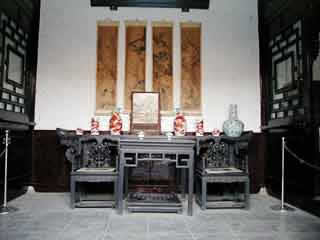 在甬道西側(cè),現(xiàn)辟為"石府復(fù)原陳列"區(qū)。這是當(dāng)年石家會(huì)晤賓客、娛樂消閑、誦經(jīng)禮佛的場所。裝飾陳設(shè)豪華。有四扇木雕花屏,被稱為國寶,當(dāng)時(shí)工價(jià)1200兩白銀,一朵花、一片葉就合6兩白銀。室內(nèi)設(shè)備講究。有一間客廳地下有暖風(fēng)通道,冬天在墻外地爐里每天燒木炭200斤,向室內(nèi)地下供熱。