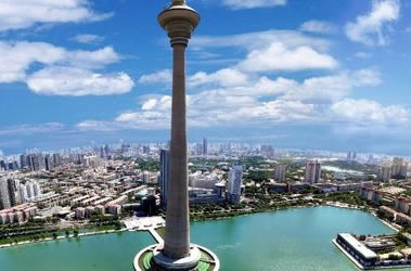 天津廣播電視塔,景名“天塔旋云”,集旅游觀光、餐飲娛樂和廣播電視發(fā)射多功能于一體。天塔總高度415.2米,水榭亭閣式的塔座上,三層跌水倒掛珠簾,水中涌泉撒花揚(yáng)珠,配以剛?cè)嵯酀?jì)、碩長挺拔的塔身,被游人稱為“空中樓閣”。天塔四面環(huán)水,碧波綠水,雄偉的天塔聳立期間,天塔總高度415.2米,水榭亭閣式的塔座上,三層跌水倒掛珠簾,水中涌泉撒花揚(yáng)珠,配以剛?cè)嵯酀?jì)、碩長挺拔的塔身,被游人稱為“空中樓閣”的飛碟型塔樓,這一切相得益彰,使天塔宛若一位臨波出浴的仙子。