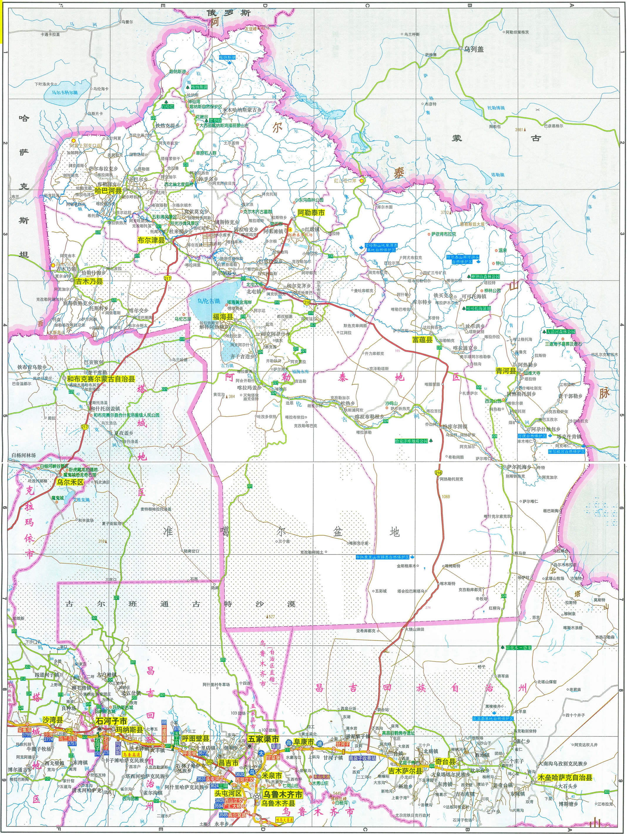 福海縣 面積32400平方千米,人口65041,政府駐福海鎮(zhèn),下轄3個鎮(zhèn)、3個鄉(xiāng)