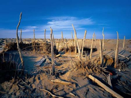 羅布泊干涸后,周圍生態(tài)環(huán)境發(fā)生巨變,草本植物全部枯死,防沙衛(wèi)士胡楊樹成片死亡,沙漠以每年3~5米的速度向羅布泊推進,很快和廣闊無垠的塔克拉瑪干沙漠融為一體。羅布泊從此成了寸草不生的地方,被稱作“死亡之!。