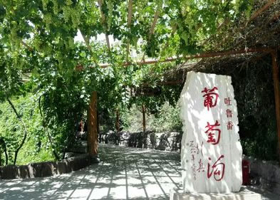 一是葡萄溝接待站。這是為中外賓客開辟的游覽場所,依山旁水,安靜、幽雅,景物天成,數(shù)條葡萄長廊深邃、幽靜,有的游客信步葡萄架下,仰首盡情觀嘗珍珠般的葡萄,有的游人坐在葡萄架下品嘗鮮葡萄。長廊盡頭碑石上葡萄溝三個鮮紅大字,格外引人注目,游人爭先恐后在此照相留念。園內(nèi)有民族風(fēng)味的食堂,有賣工藝品的蒙古包,還有劃船游玩的地方。
