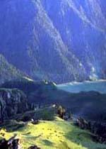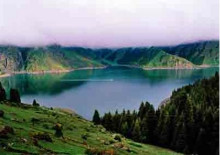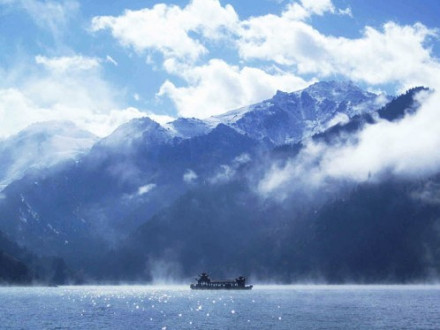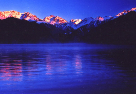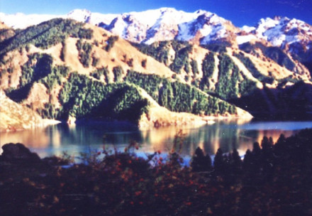 三江河洪水:即“南湖黃龍”,三江河水從大天池南段入湖處,由于博格達山區(qū)夏季降水較多,常暴雨盆潑,三工河上游集水面積有168平方公里,河水每當(dāng)大雨洶涌北瀉,從天池北南望。