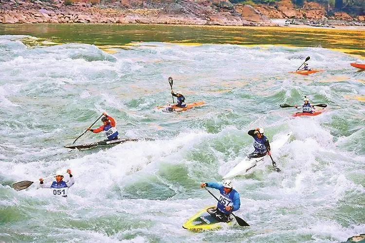 中國怒江皮劃艇野水國際公開賽充滿速度與激情。 怒江融媒體中心供圖