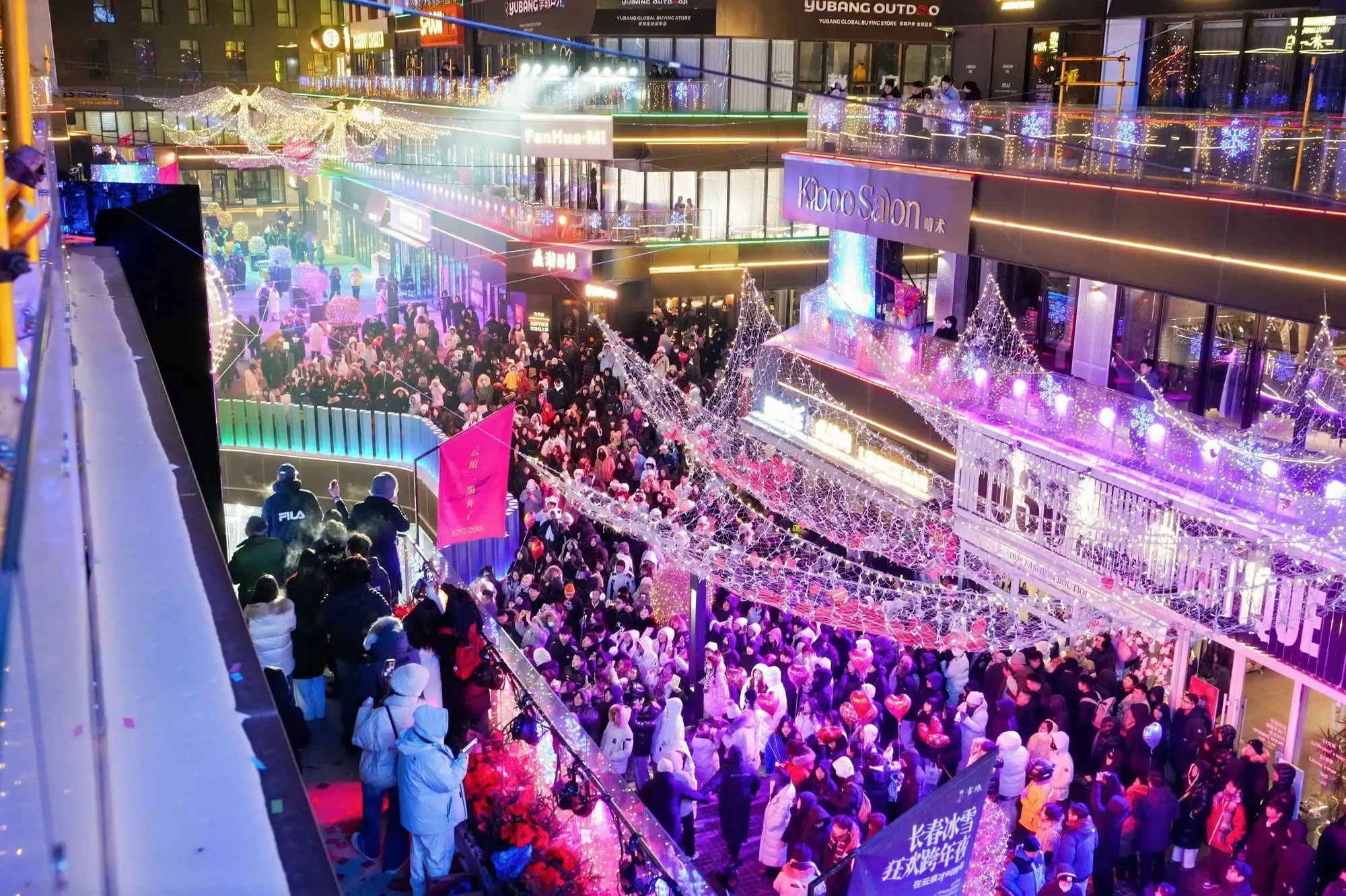 跨年夜當(dāng)晚,伴隨云瑯冰雪公園亮燈儀式,80萬米流光燈帶在街區(qū)內(nèi)次第點(diǎn)亮,編織出一張貫穿冬夜的光影網(wǎng)絡(luò),打破北方冬季單一的“白色敘事”。青怡坊云瑯籌備了“天幕表白計劃”、露臺音樂“云瑯紅人之夜派對”匯聚青年文化力量,為街區(qū)注入更具當(dāng)代氣質(zhì)的社交活力。與此同時,邀請百萬級施坦威鋼琴演奏會在街區(qū)空間持續(xù)進(jìn)行,以克制而純粹的音樂形式,為跨年夜提供一條綿延而持久的時間線索。