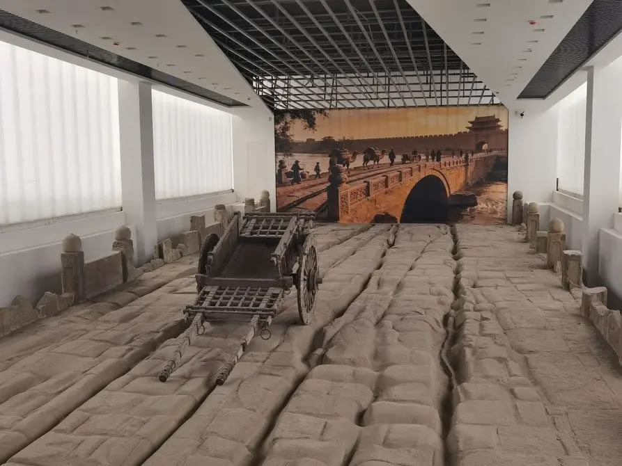 走進(jìn)上下兩層的遺址館,人們?cè)谏蠈涌煽吹芥?zhèn)遠(yuǎn)橋歷經(jīng)數(shù)百年車輪碾壓而形成的車轍。走到下層,一座完整的拱形石橋便立刻躍入眼簾,穿橋洞而過(guò),可近距離欣賞到鎮(zhèn)遠(yuǎn)橋的橋拱、橋磚、橋釘?shù)燃?xì)節(jié)。
