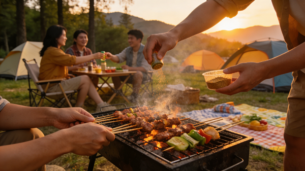 ▲露營(yíng)炭烤▲