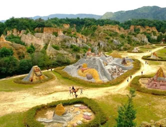 國際彩色沙雕節(jié)不但成為云南旅游的一個重要節(jié)會活動,其獨特的創(chuàng)意使之成為云南旅游業(yè)的一個知名品牌。同時也留下了許多永久性的沙雕作品,一座座精美絕倫的沙雕作品為彩色沙林開創(chuàng)了一個沙雕博物館,使人文景觀與自然景觀完美結(jié)合,帶給人們于震撼靈魂的吃驚。