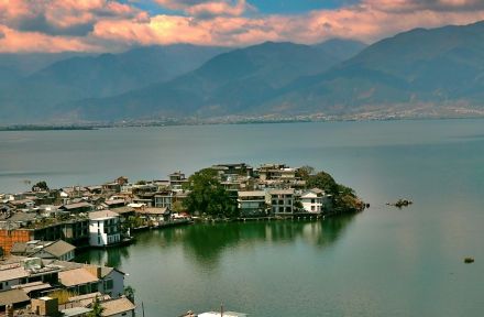 該島四面環(huán)水,東靠著名佛教圣地雞足山,北接石寶山,南連大理,西對蒼山洱海,因占據(jù)著得天獨厚的旅游資源,故素有“大理風(fēng)光在蒼洱 ,蒼洱風(fēng)光在雙廊”之美譽。