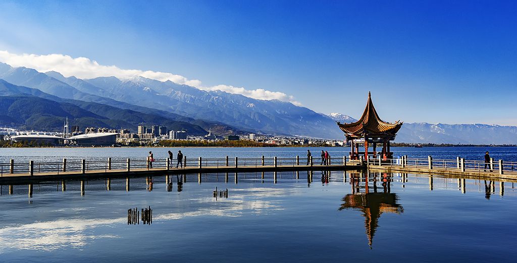 洱海,在古代文獻中曾被稱為“葉榆澤”“昆彌川”“西洱河”“西二河”等,位于云南省大理白族自治州大理市北部。水面海拔1972米左右,南北長41.5公里,東西寬3至9公里,周長116公里,面積251平方公里。