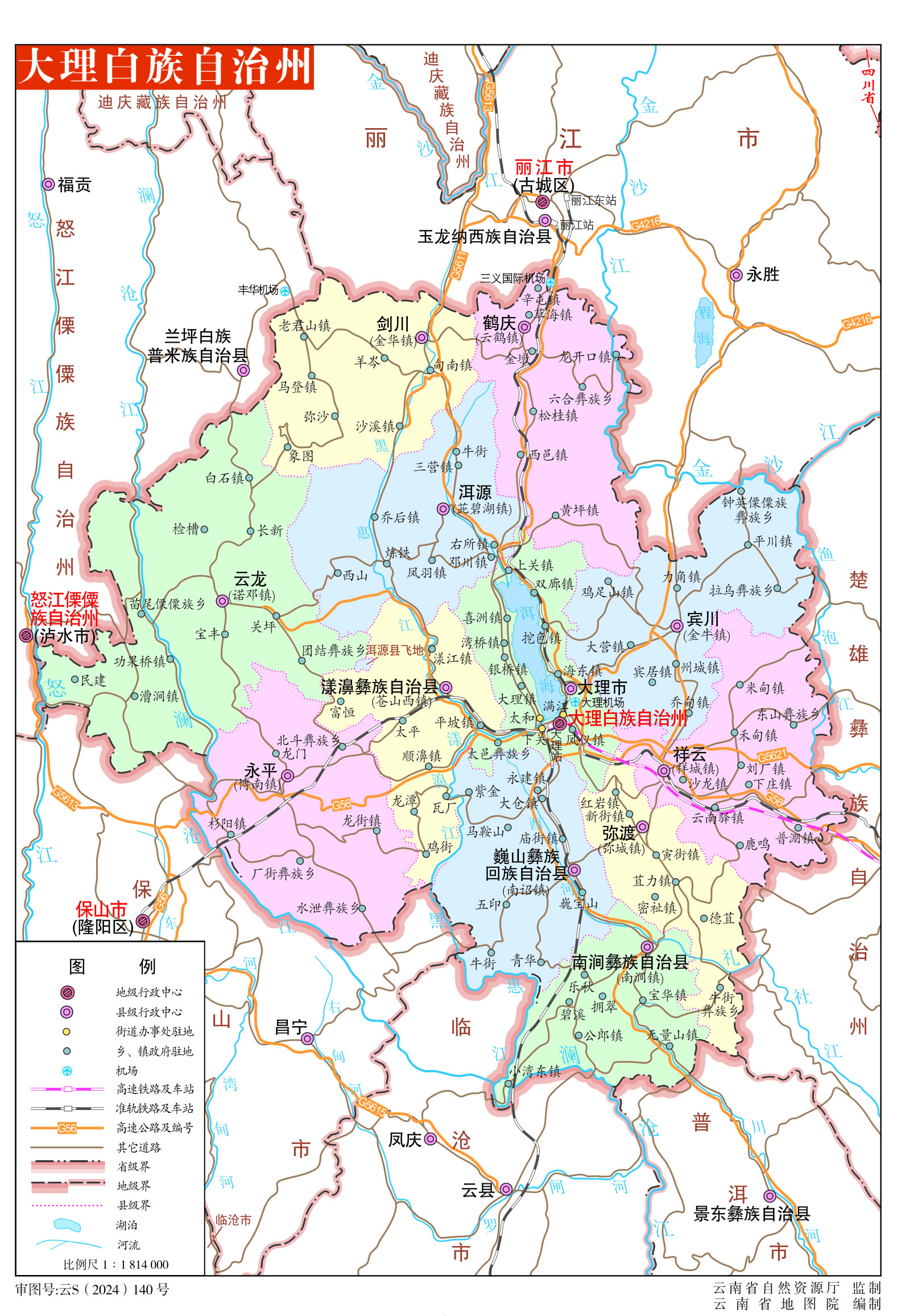 大理白族自治州轄1個縣級市、11個縣: