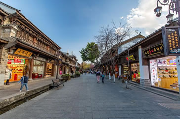 復(fù)興路是大理古城主干道和最繁華的街道,連接南城門和北城門,總長1500米,路面為麻塊石路面,是古城南北方向最長的主干道。復(fù)興路兩邊商鋪保持了民清時(shí)期的建筑風(fēng)格,是大理古城主要商業(yè)街道。