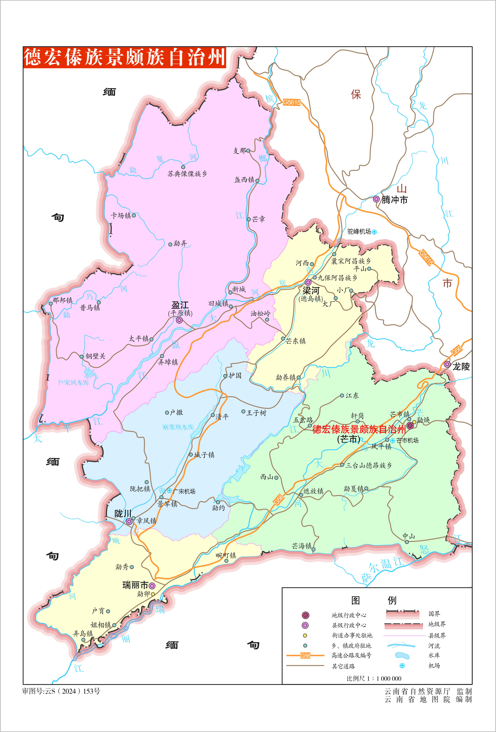 德宏傣族景頗族自治州轄2個(gè)縣級市、3個(gè)縣: