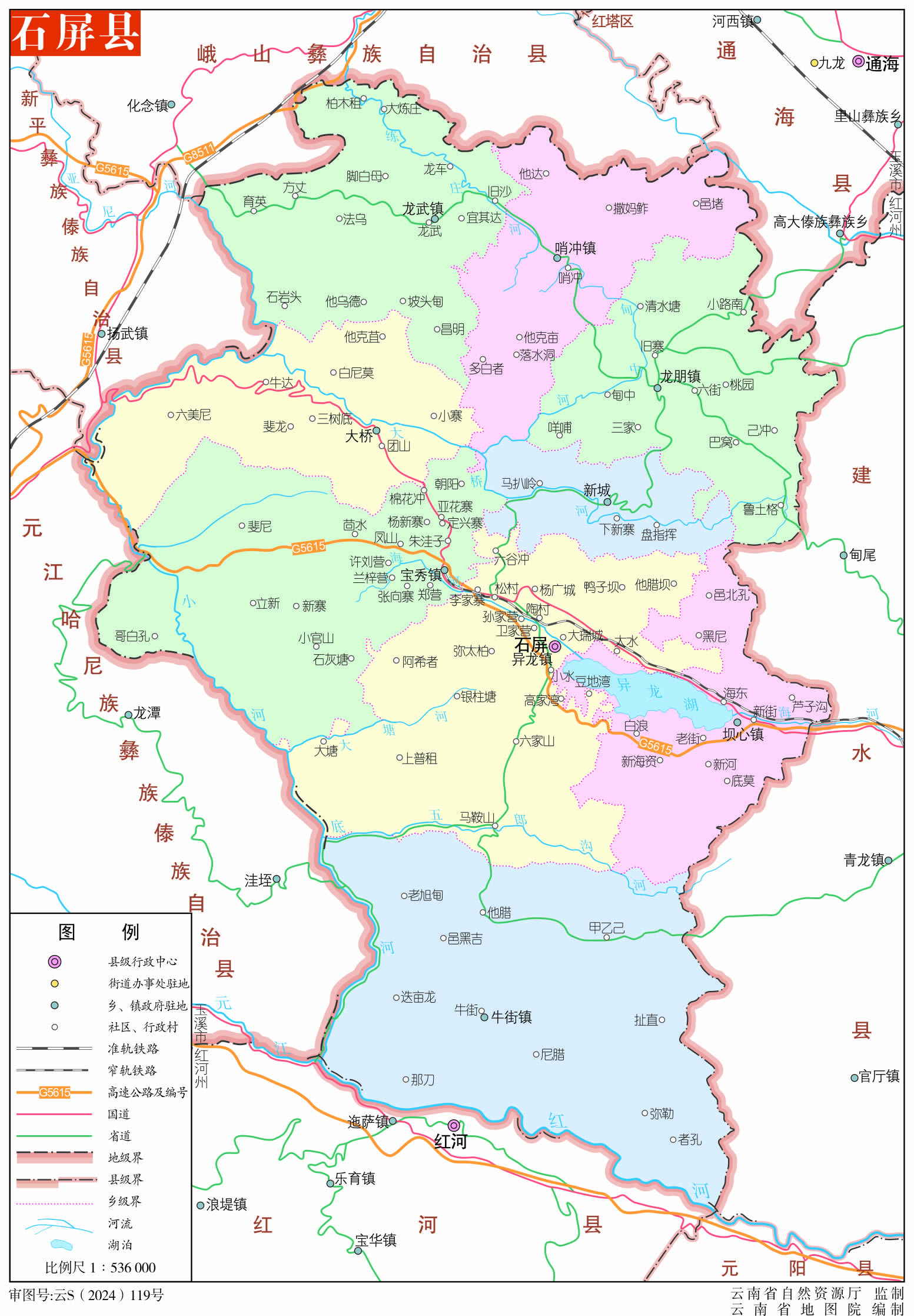 石屏縣轄7個(gè)鎮(zhèn)、2個(gè)鄉(xiāng):