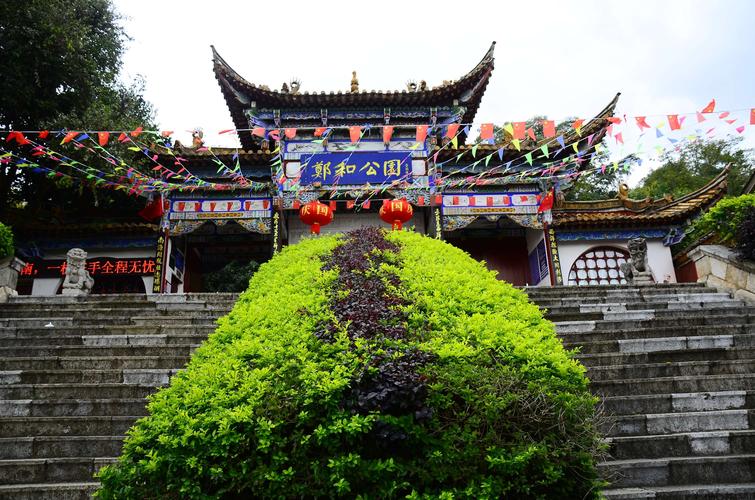 鄭和公園座落在滇池風(fēng)景區(qū)南岸,晉寧區(qū)城的月山上,始建于1978年,原名為月山公園,1980年為了紀(jì)念鄭和,將月山公園更名為“鄭和公園”,占地面積16.67公頃(250畝)。公園以鄭和文化為主題,被列為昆明新十六景之一,名為“月山帆影”,1988年命名為滇池國家重點(diǎn)風(fēng)景名勝區(qū),園內(nèi)主要有鄭和雕像、三寶樓、鄭和碑林、馬哈只墓、鄭和紀(jì)念館、鄭和故居等景點(diǎn)。其中,“馬哈只墓碑”為國家級(jí)重點(diǎn)文物保護(hù)單位,“鄭和紀(jì)念館”為云南省首批愛國主義教育基地。