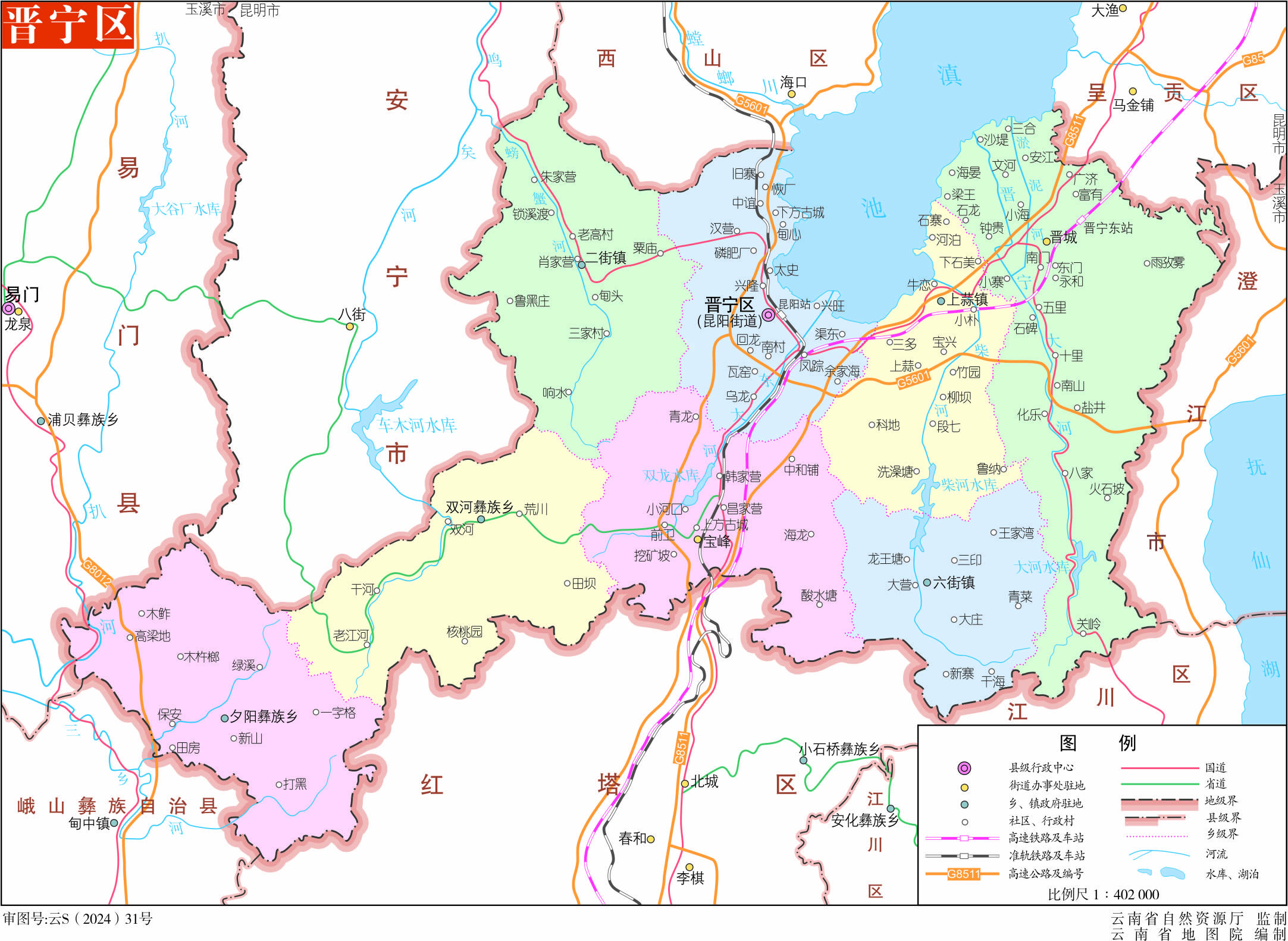 晉寧區(qū)轄3個(gè)街道、3個(gè)鎮(zhèn)、2個(gè)鄉(xiāng):