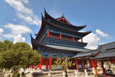 文昌宮及觀景臺位于古城獅子山西側。始建于清雍正元年(1723年),為麗江首任知府楊馝遷建,是麗江古城內的道教寺廟。
