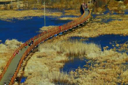 草海上有走婚橋,長(zhǎng)達(dá)300余米,連接著兩岸摩梭人的村莊,為走婚的“阿夏”提供了便捷的通道,因此號(hào)稱(chēng)——“天下第一愛(ài)情鵲橋”。據(jù)說(shuō)它還是左所土司喇寶成的漢族夫人去后宮的一條捷徑。