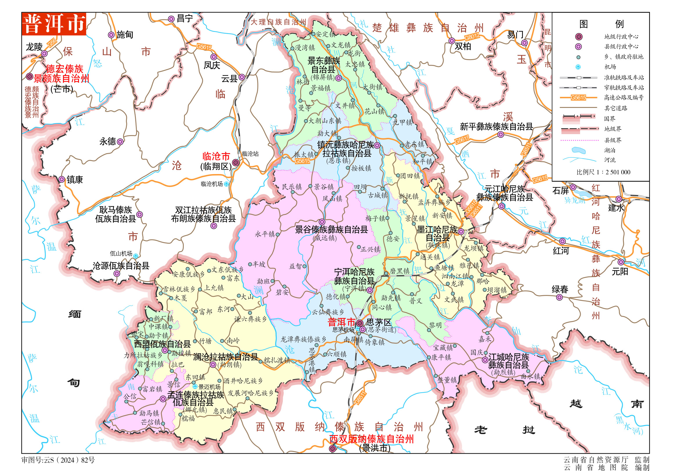 普洱市轄1個市轄區(qū)、9個自治縣: