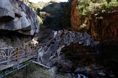 古代的文人墨客雖然游了石門關,但卻不能進入石門關縱深之處游覽,李元陽驚呼石門內(nèi)“忽驚飆從空中飛墜,聲如訇雷,凜乎不可留,從者扶挽而出!毙煜伎涂疾斓绞T關口嘆道:“但門以內(nèi)則石崩水涌,路絕不通,乃復上就北岐躡磴”。二位先賢不能進入石門縱深游覽,不能說不是一種遺憾。隨著歲月的流逝,歷史的滄桑巨變,現(xiàn)代人能隨心所欲進入石門縱深探幽走險,實在是一種福份。