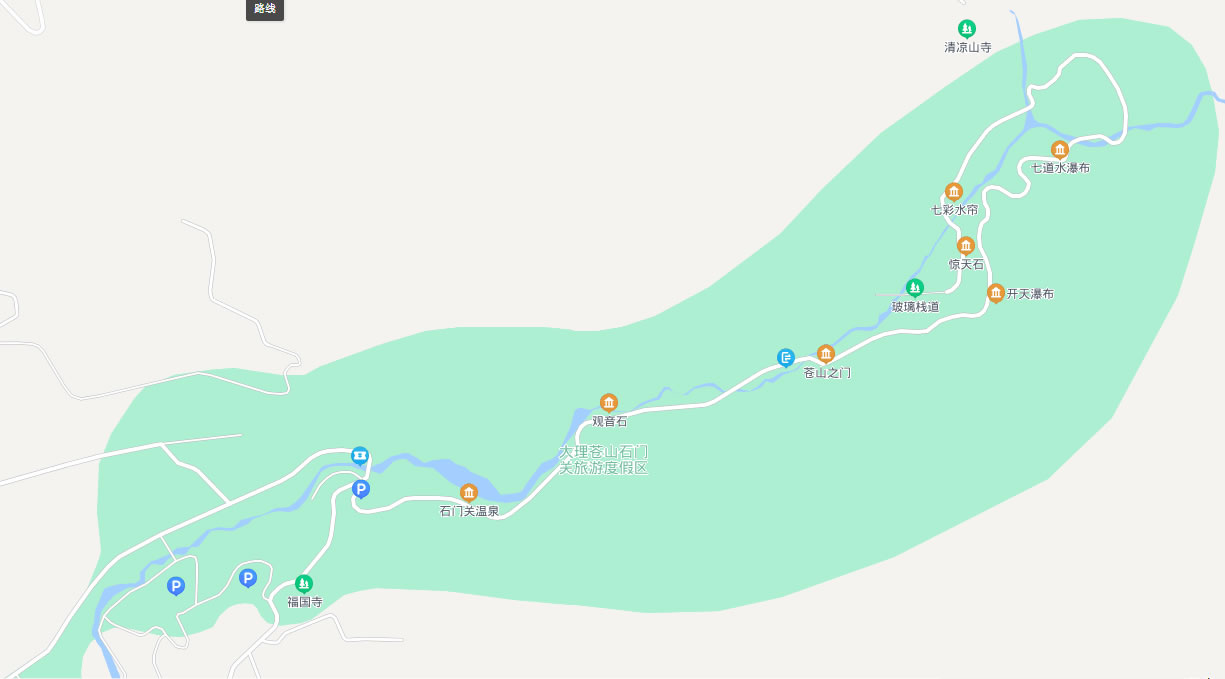 大理——下關 :下關風車廣場收費站(入)—G56杭瑞高速路保山方向行駛19km—平坡收費站(出)—漾濞縣城方向行駛8km—石門關景區(qū)(全程27km)