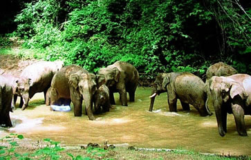 三岔河自然保護區(qū)以其特有的熱帶原始森林景觀和數(shù)量較多的野生亞洲象(約130多頭)而著稱于世。公園所在地原來就有一個野象經(jīng)常出沒飲水的象塘,自八十年代末期開始,國家級自然保護區(qū)的下屬 有關(guān)單位就在象塘附近的河畔投放食鹽,長期對野象進行引誘,成群的野象不時出現(xiàn)在河畔。