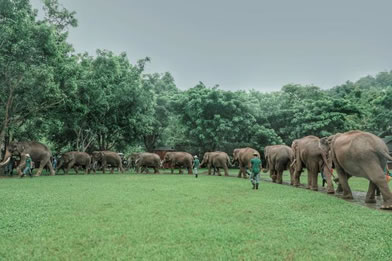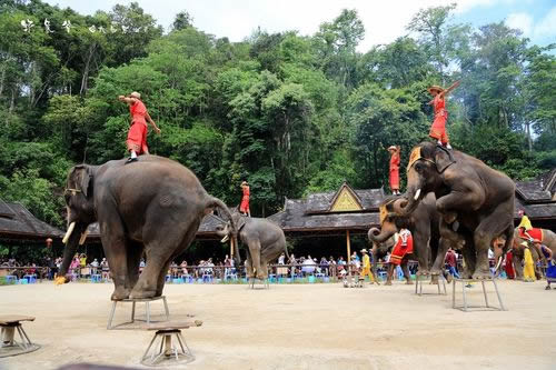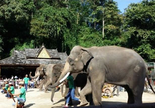 游客到野象谷,白天可觀賞訓(xùn)練過的大象表演節(jié)目,夜晚可一睹從森林走到此地覓食的真正野象風(fēng)姿。