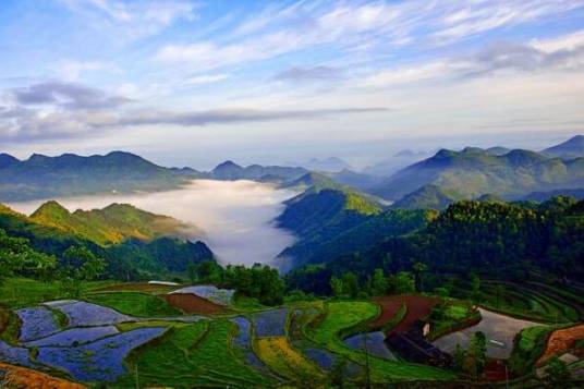 哀牢山,以古代哀牢部落在此繁衍生息而得名。屬云嶺余脈,元江與阿墨江的分水嶺,滇東高原和橫斷山地兩大地貌區(qū)的分界線。北起楚雄市,南抵綠春縣。西北一東南走向,山體陡峻。全長約450千米,寬15~30千米,總面積近1萬平方千米。