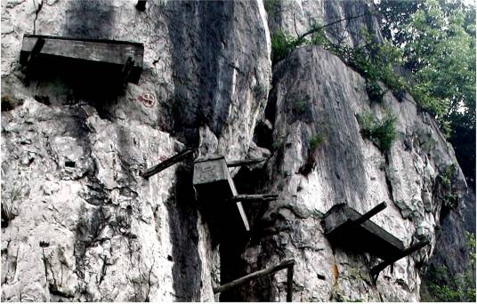瓦石僰人懸棺位于威信縣長(zhǎng)安鄉(xiāng)瓦石行政村棺木崖和白虎巖上,與四川省珙縣僰人懸棺相同。棺前為林鳳河瓦石段。由于大量朽壞脫落,現(xiàn)懸棺3具,復(fù)制4具后計(jì)7具,民間傳說為何姓“白人子”墓。明代以前遺物,石上鑿孔,插入厚木,棺凌空橫置木上,任憑風(fēng)吹雨打。 掛于數(shù)百米懸崖絕壁上,是神秘和求知的象征。懸棺雖然經(jīng)過部分整理,但原貌基本尚存。2000年,已由奧地利王妃出資進(jìn)行保護(hù)。從山下仰望萬(wàn)仞絕壁上的懸棺,給人的絕非是神秘和震撼的感覺。