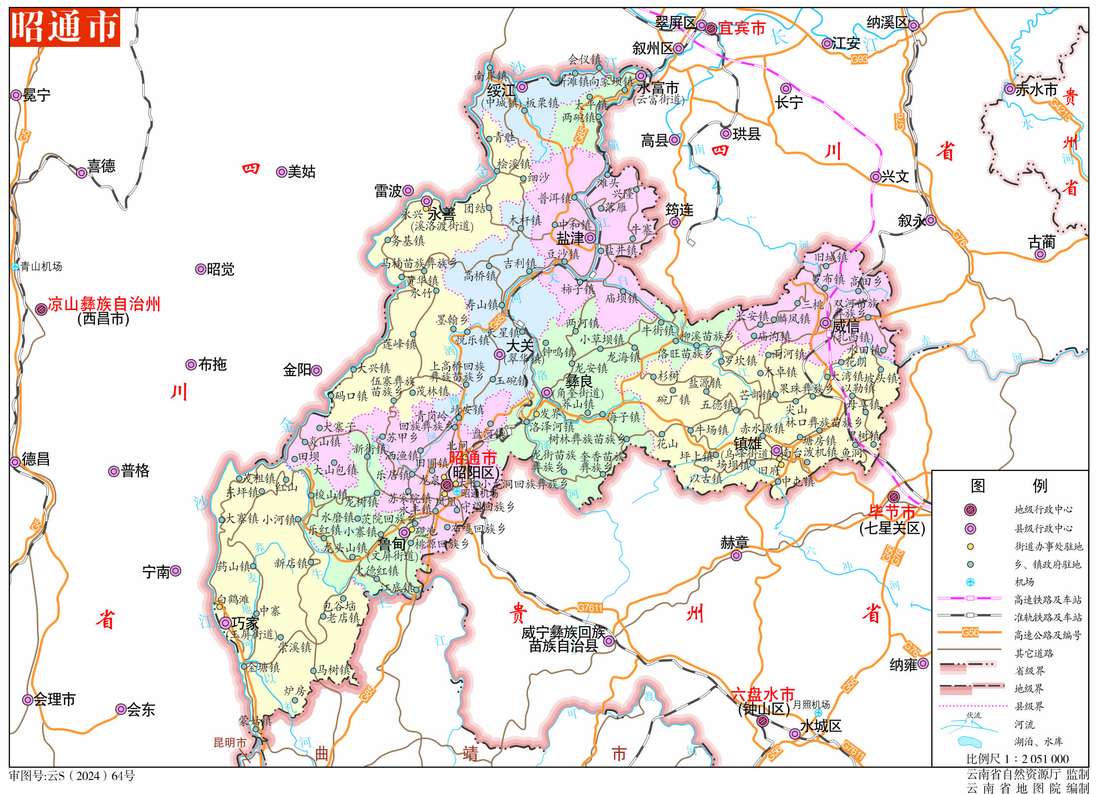 昭通市轄1個(gè)區(qū)、9個(gè)縣、1個(gè)縣級(jí)市: