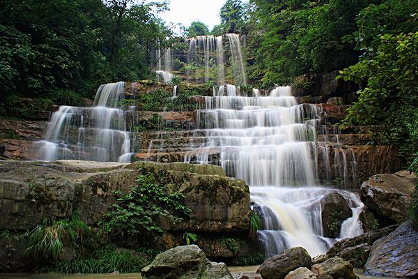大關(guān)黃連河瀑布群距昭通市大關(guān)縣城5公里,有專(zhuān)線公路及中巴車(chē)直達(dá)景區(qū)。沿途山花爛漫、幽谷縱橫、清泉奔涌、鳥(niǎo)語(yǔ)花香。主要景點(diǎn)有仙女瀑、情郎瀑、少女瀑、月老瀑、鴛鴦瀑、洞房瀑、相思瀑、對(duì)歌瀑、姊妹瀑、銀鏈瀑、迎客瀑、壽星瀑、珠簾瀑及神秘莫測(cè)、千姿百態(tài)的白象洞,令人心曠神怡的水簾長(zhǎng)廊和使人銷(xiāo)魂愜意的大滑板等20多處。加上形似飛鴿的世界珍稀植物珙桐花,堪稱(chēng)天下奇景。