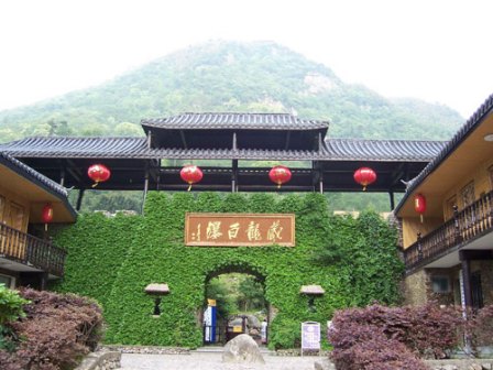 藏龍百瀑是浙江最大的瀑布群,有三折重疊,落差為60多米的“長(zhǎng)龍飛瀑”,有彩虹橫臥的“ 虹貫龍瀑門”(人稱小黃果樹),更有神形皆備的“神龜聽瀑”——真可謂瀑瀑相連,一步一景。藏龍百瀑不僅以瀑布眾多而聞名,同時(shí)還有一塊萬噸巨石在七千萬年前就懸掛在兩座懸崖之間,人稱“仙人橋”,有千鈞一發(fā)之險(xiǎn),望仙石、老鷹石、天生懸石,石石相望,形象逼真。俗話說深山藏寶,景區(qū)內(nèi)有多種野生動(dòng)物和近百種國(guó)家保護(hù)樹種。夏天天氣涼爽,寧?kù)o幽雅,有十里不打傘之奇,峽谷無蚊之妙;冬天百瀑冰凌,天造奇觀,雪景迷人,堪稱“江南哈爾濱”。藏龍百瀑景區(qū)位于浙江省安吉縣東南部(又名太平天國(guó)“小梁山”),距縣城18公里,南連臨安“小九寨溝”風(fēng)景區(qū),西與世界第二、亞洲第一的天荒坪抽水蓄能電站相連,湖州通向臨安的臨青省道橫穿藏龍百瀑景區(qū),藏龍百瀑景區(qū)方圓30多平方公里,進(jìn)入景區(qū)沿途兩岸千米高山對(duì)峙,森林茂密,路邊飛瀑流泉,可見懸崖疊障,奇峰林立,瞬間迎面而翠竹連綿。藏龍百瀑是浙江最大的瀑布群,有“神龜聽瀑”——真可謂瀑瀑相連,一步一景。