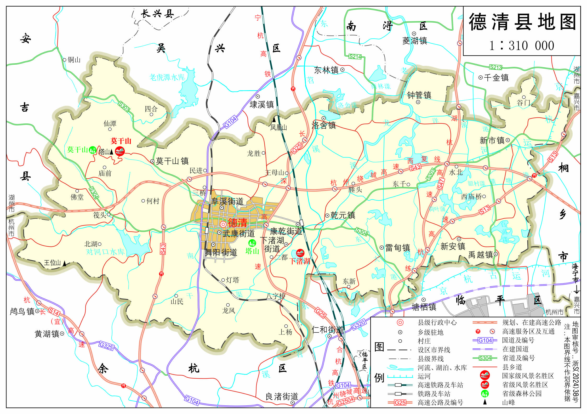 鎮(zhèn):武康鎮(zhèn)、乾元鎮(zhèn)、新市鎮(zhèn)、洛舍鎮(zhèn)、新安鎮(zhèn)、雷甸鎮(zhèn)、鐘管鎮(zhèn)、禹越鎮(zhèn)、莫干山鎮(zhèn)