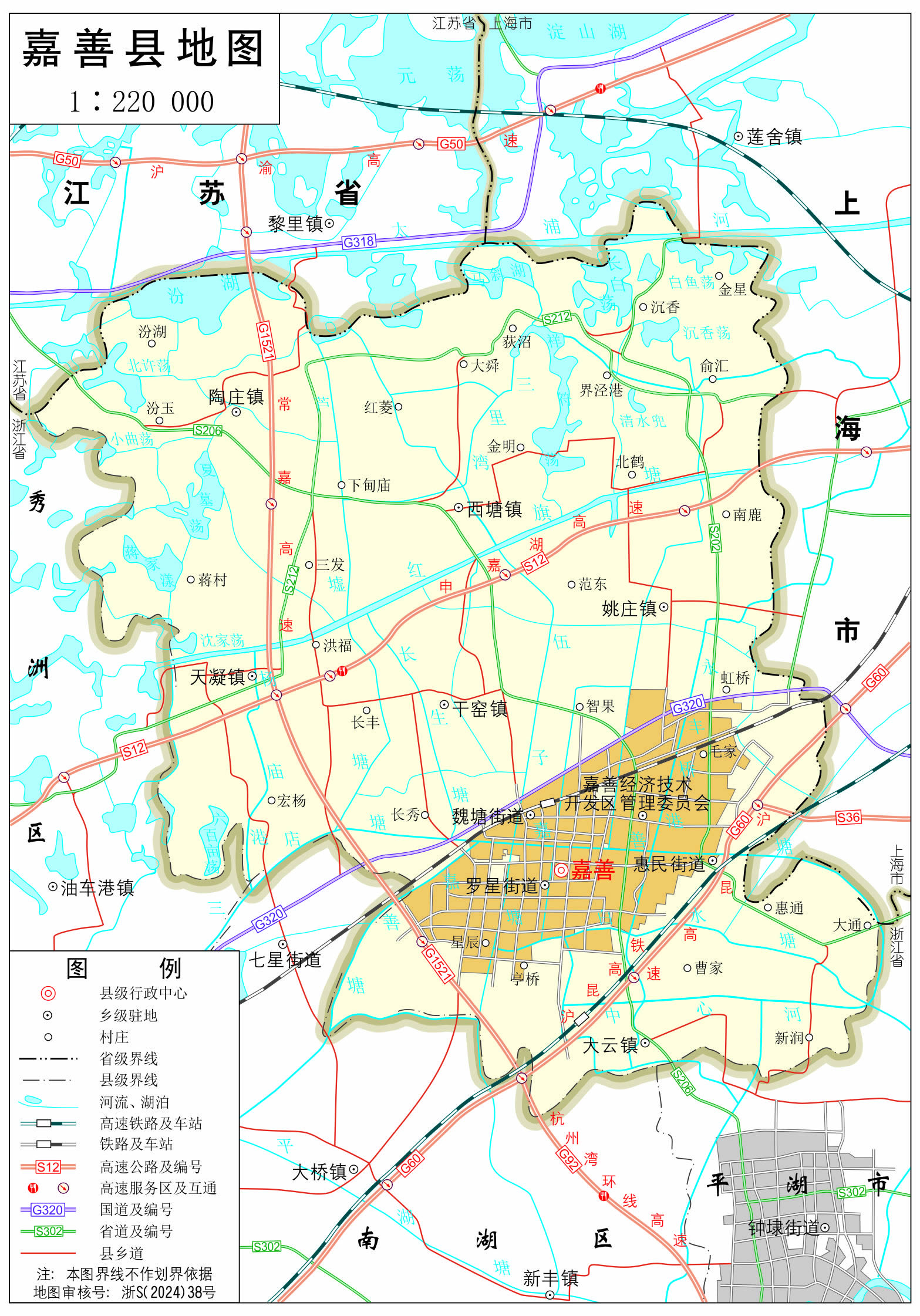 嘉善縣轄3個(gè)街道、6個(gè)鎮(zhèn):