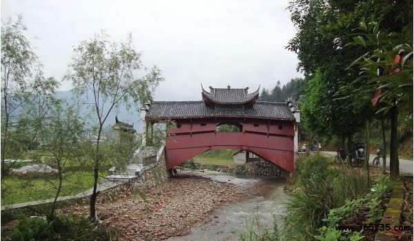 如龍橋:位于慶元縣舉水鄉(xiāng)月山村南側(cè),橫跨于舉溪,呈南北走向,因其態(tài)勢(shì)與后山山脊的古松林依稀相連,橋似龍首下傾,故名。如龍橋修建于明天啟五年(1625),其結(jié)構(gòu)復(fù)雜,工藝精湛,功能完備,系迄今發(fā)現(xiàn)有明確紀(jì)年、年代最早的木拱廊橋之一。此橋建筑上頗具宋代遺風(fēng),目前在全國已屬少見,具有很高的歷史、藝術(shù)和科學(xué)考察價(jià)值,為全國重點(diǎn)文物保護(hù)單位。