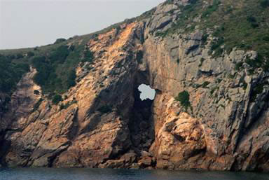 說起南麂列島的絕景,天然壁畫應(yīng)是“首絕”,這又是大自然杰作。位于三盤尾南部東側(cè)峭崖處,是原杭州大學(xué)張友良教授首先發(fā)現(xiàn)。畫壁寬約40米,高30余米,氣勢(shì)恢宏,層次分明,被專家譽(yù)為“國寶”和東海奇觀。就在礁石錯(cuò)落,白浪排空處,高矗著一幅石屏風(fēng),整個(gè)巖面宛然是一幅天然山水畫,其中一尾大龍蝦栩栩如生,十分逼真。歷來山水畫家?guī)煼ㄗ匀唬殖Y澝雷匀痪拔餅椤疤扉_圖畫”。眼前,這天然壁畫給人帶來意外的美的享受。