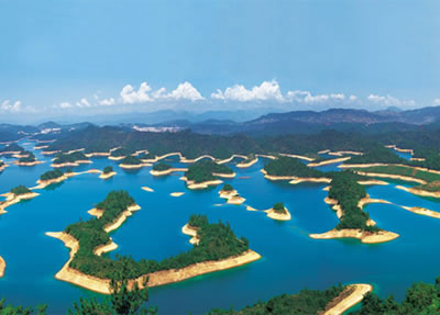千島湖碧波萬傾,千島竟秀,群山疊翠,峽谷幽深,溪澗清秀,洞石奇異,還有種類眾多的生物資源,文物古跡和豐富的土特產品,構成了享譽中外的島湖風景特點。近年來,經(jīng)過大規(guī)模的改造和建設,已形成了品位較高、內涵豐富的羨山、屏峰、梅峰、龍山、動物系列、石林六大景區(qū)的14處景點。
