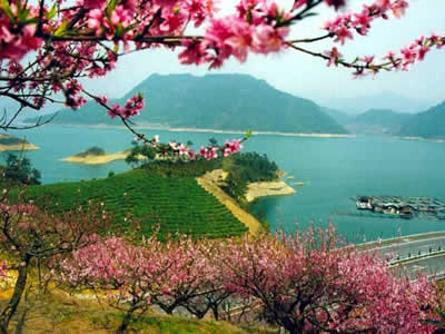 千島湖,是一個美麗的湖 。湖中那1078個島嶼,姿態(tài)各異,風姿綽約。春游湖上,布滿山花的島嶼,是一個個天真爛漫的村姑;夏日游湖,人們多想在這碧波中逐浪暢游;秋山紅葉,使人想起"霜葉紅于二月花"的詩句,雪滿湖山,松挺山崖,又是一幅王維筆下的詩畫圖。