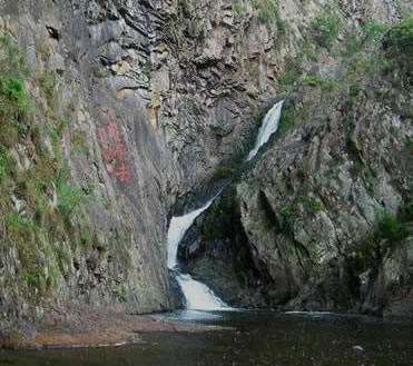 形如匹練,猶如蛟龍出海。繼續(xù)沿石磴小道,向上攀登就可以看到烈馬奔騰似的第四洩,瀑布的擊石聲及山谷內(nèi)的回聲,震天動地。