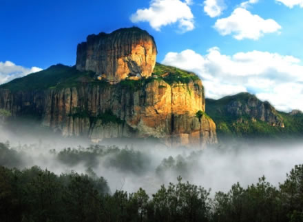 南雁蕩山,簡(jiǎn)稱南雁,位于平陽縣西部,距溫州市區(qū)87千米。主峰明王峰,海拔1080米,山頂有泥塘沼澤,秋科時(shí)節(jié)有大雁在此棲息,且與北雁蕩山遙望相對(duì),故名南雁蕩。南雁蕩山總面積97.68平方千米,群巒疊翠,飛瀑溪潭,共有67峰、28巖、24洞、13潭、8潭、9石。南雁蕩的開發(fā)較早于北雁蕩,五代時(shí)高僧愿齊就率三百名門徒在此開發(fā)。