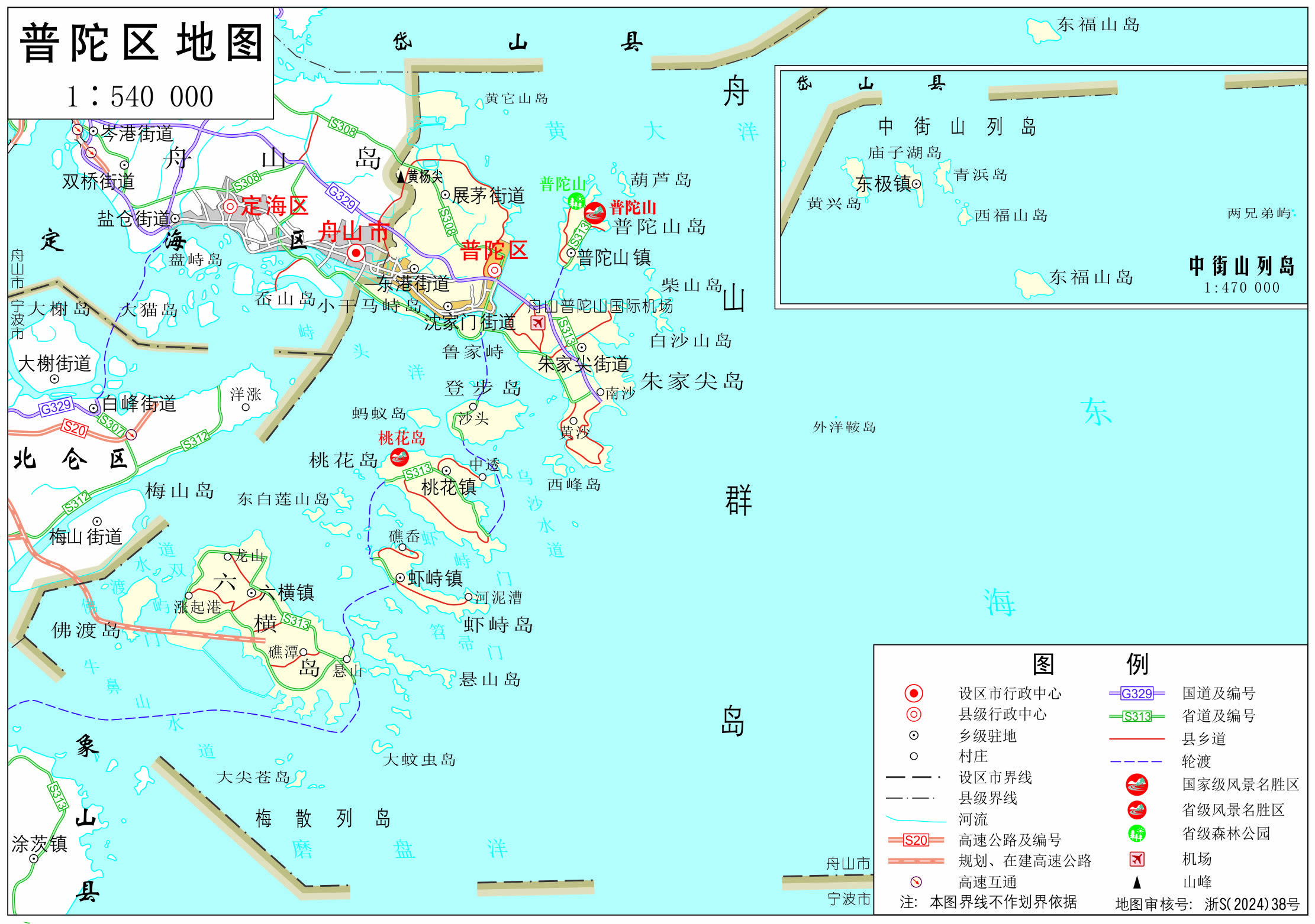 街道:沈家門街道、勾山街道、東港街道、朱家尖街道、展茅街道